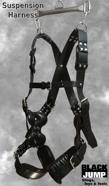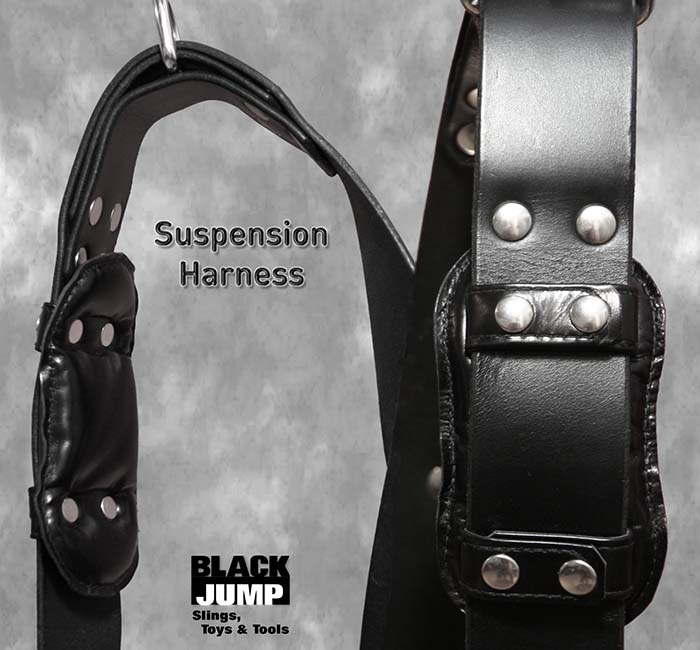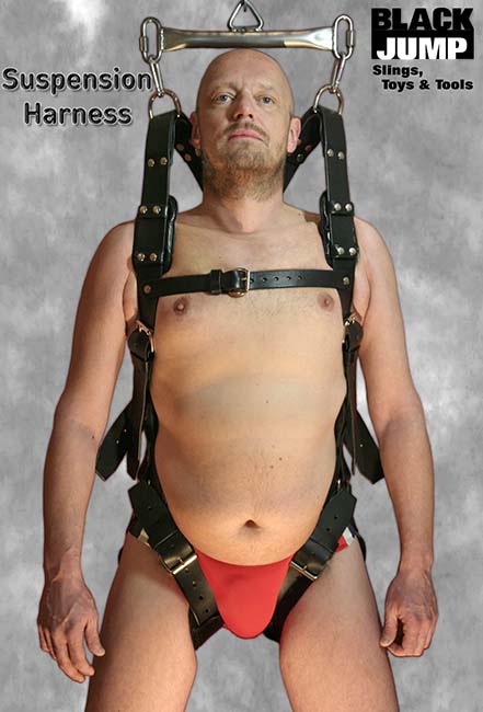 Mehrfach abgepolsterter, sehr stabiler Leder Hänge-Harness, mit verstellbaren Gurten für alle Körpergrößen.