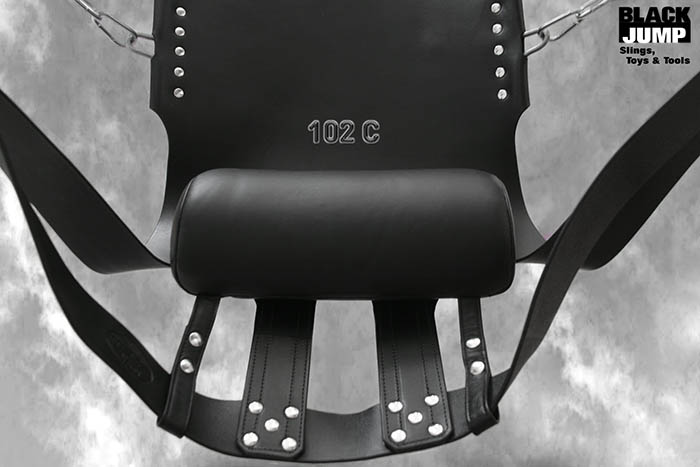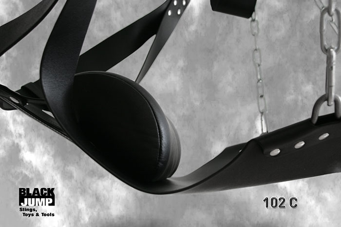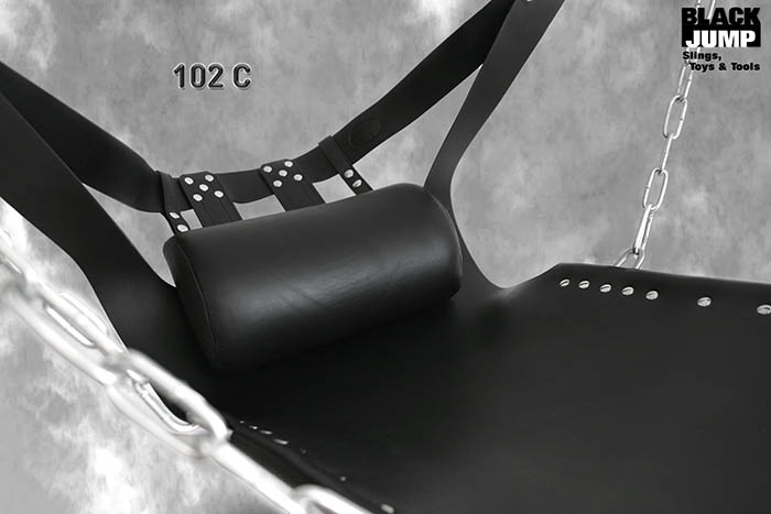 Version A des Blackjump Slings 103 zeigt sich als multifunktionales Wunder: Stabile kniende Bauchlage für extra tiefe Erlebnisse sind ebenso möglich wie der Aufbau als Sitz-Sling! Drei Slings in einem. Für Aufhängung an einem oder zwei Haken in der Decke geeignet. Wird inkl. PP-Halterungen in den Seitenteilen, einer BJ Spezialfeder und der VA Spezialstange geliefert. Auf Wunsch ist ein anknöpfbares Kopf-Kissen getrennt erhältlich. Blackjump Ein-Punkt-Sling Nr.102 A Slingschaukel ![]() Robuste, glatte Leder-Sling Schaukel: eine dem Körper angepasste Sling-Matte, die seitlich an sechs Punkten gehalten wird - die Mattenversion meines Blackjump Slings, jedoch ohne Polster, aus 4-5 mm starkem Sattlerleder.